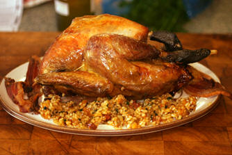 Guinea fowl with chorizo, apricot and pine nut stuffing |