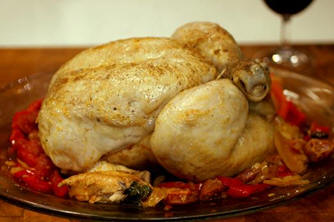 Poulet Basquaise is a delicious dish from the French part of the Basque region. It is laced with peppers and tastes of the sun. To be really authentic it needs d’Espelette peppers but as these are not always available, it is possible to use other peppers with excellent results. Preparation Time: 30 Mins Cooking Time: 45 Mins Total Time: 1¼ har Ingredients For 6 servings… Olive oil 1 Onion - sliced Garlic 2 Peppers - red - sliced 10 Peppers - d'Espelette, green - sliced 6 Tomatoes - chopped roughly Bay leaves Thyme Parsley Pepper Salt Flour 1 Chicken - jointed Method In a little oil, sweat the onion and the garlic and peppers. When the onion is translucent, add the tomatoes, bay, thyme, parsley, salt and pepper. Let it simmer covered about 25 minutes. Meanwhile, flour the chicken joints and then sauté them in a casserole with a little oil for the time it takes to cook vegetables. Then mix meat and vegetables and cook for another 15 minutes. Serve accompanied with brown rice, sautéed or boiled potatoes. Variations If green d’Espelette peppers are not available, use green bell peppers, a jalapeno chilli and a tablespoon of paprika instead. Wine recommendations Ideally, a red wine from South-West France. Conventional Irouleguy Interesting Bordeaux Supérieur Côtes de Bourg Côtes de Gascogne rouge or rosé