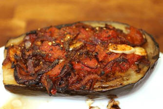 The name of this recipe, Imam Bayildi, translates from the Turkish as “the Imam fainted” or “the Imam swooned”. The dish originated from Turkey. It can be served as a starter, a vegetable main course or as a side dish. It can also be served as a meze dish Preparation Time: 15 Mins Cooking Time: 1 Hr Total Time: 1¼ Hrs Ingredients For 4 servings… 1810 gms Aubergines 10 cl Olive oil Pepper - freshly ground, black Salt 450 gms Onions - sliced thinly 4 cloves Garlic - sliced thinly 450 gms Tomatoes - sliced 1 tsp Oregano 10 cl Water 1 tsp Thyme 1 tsp Sugar 3 tbs Parsley - chopped Method Slit aubergines along one side and open them out so that they can be stuffed. Shallow fry them all over in 4 tbs of the olive oil (add more if needed). Remove and place in an oven-proof dish. Season. In a pan, lightly sauté the onions and garlic in the remaining oil. Add the tomatoes and ¼ pint of ater. Add the oregano, thyme and sugar, cover and cook gently for 15 minutes. Fill the aubergines generously with the onion mixture. Bake at 180°C for 40 minutes. Garnish with parsley and serve. Wine recommendations A robust red wine. Conventional Côtes du Rhône Interesting Corbières Gaillac Lirac Madiran