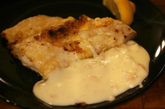 Haddock grilled with butter, egg and flour and served with shrimp sauce |