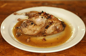 This is a simple partridge dish from the Auvergne in France. It is light as a result of using white wine and accentuates the natural taste of the partridges. Preparation Time: 10 Mins Cooking Time: 50 Mins Total Time: 1 Hr Ingredients For 2 servings… 60 gms Salt pork 30 gms Butter Partridges 2½ tbs Brandy 4 tbs Wine - dry white 4 tbs Stock - game 1 Bay leaf Thyme Parsley 1 clove Garlic - crushed Method Soak the salt pork hour in water for 1. Cut it in small cubes. Put the pork with half of the butter in a heavy pan just large enough to hold the two birds. When the fat from the pork starts to run, put in the birds, breast downwards. After 2 or 3 minutes pour in the warmed brandy and set light to it. Shake the pan so that the flames spread. When these have died down, pour in the white wine and let it bubble for a minute. Add the stock, herbs and garlic. Cover the pan with foil and a well-fitting lid. Transfer it to an oven at 170°C., and cook for 40 minutes. Pour off all the liquid into a wide pan and keep the birds hot in the serving dish. Reduce the liquid by fast boiling to about half its original volume. Off the fire, add the remaining butter and stir the sauce until the butter has melted and given it a slightly glazed appearance. Pour it over the partridges and serve. Wine recommendations A Bordeaux-style red wine Conventional Bordeaux Supérieur Interesting Bourgueil Chinon Irouleguy Saint Émillion Saumur-Champigny